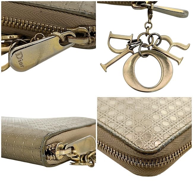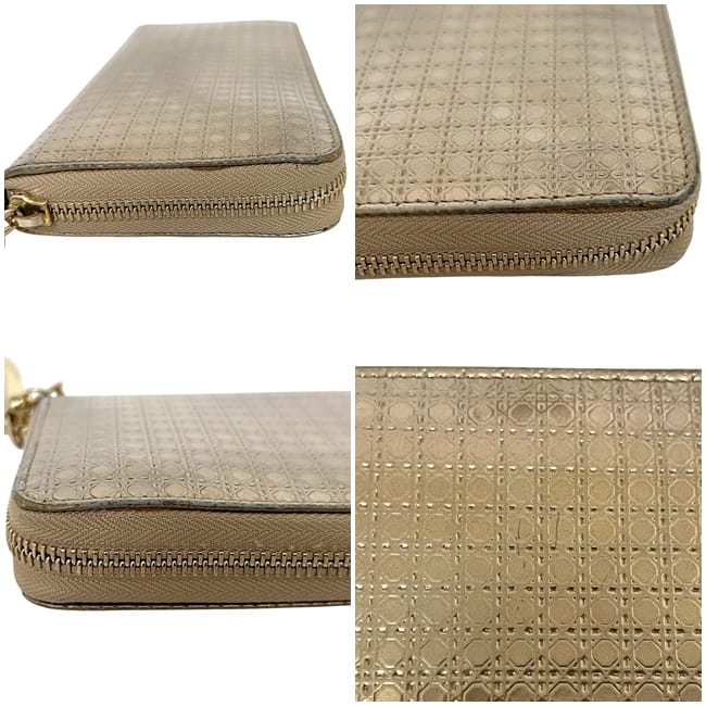 クリスチャン ディオール ラウンドファスナー 長財布 ec-24935 ゴールド カナージュ 財布 美品 レ28,300 円
