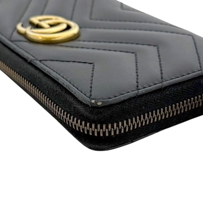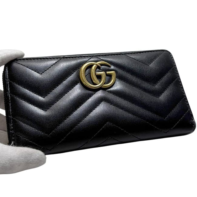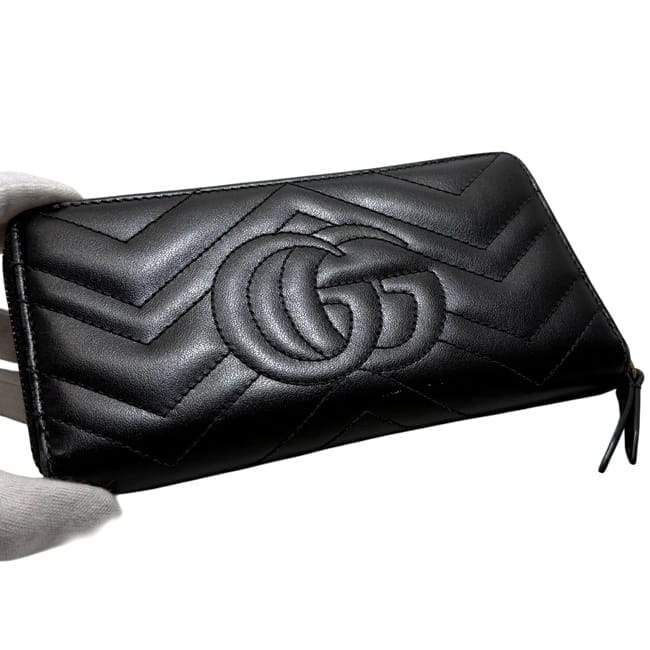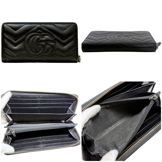グッチ ラウンドファスナー 長財布 ec-25170 ブラック シマライン 307987 財布 美品 レザー24,500 円