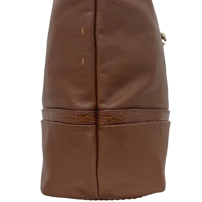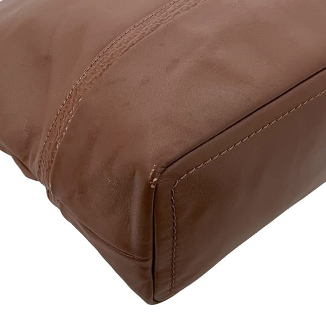 | 詳細説明 | 底部の角に擦れ、サイドのマチ部分の表面に擦れによるダメージ、金具に小傷など使用感はございますが比較的綺麗なお品物です。 |