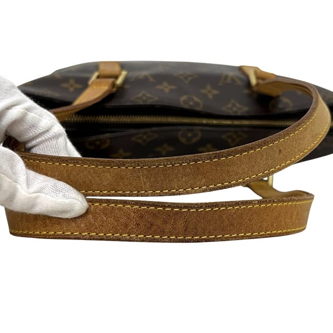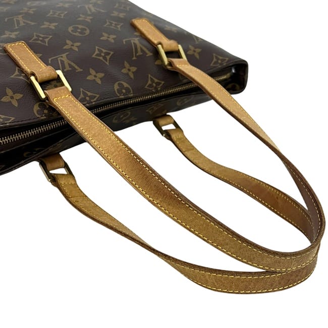 | 詳細説明 | 内側に汚れ、ヌメ革部分全体にヤケによる変色、ハンドルに皺や上部に黒ずみ、底面のヌメ革に染み汚れ、底部の角に擦れ、金具に傷、内側にルイ・ヴィトン特有の臭い有。使用感はございますがまだまだお使いいただけるお品物です。 |