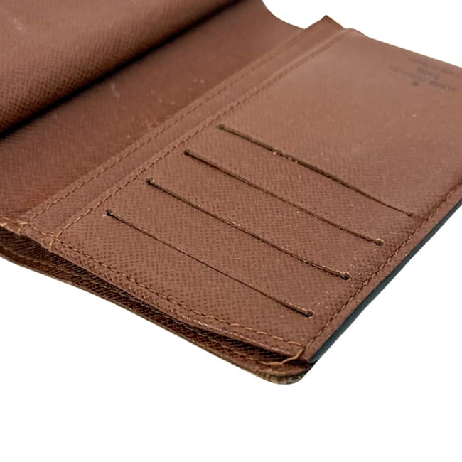 | 詳細説明 | 角に擦れ、金具に傷やくすみ汚れ、内側にホックの押し跡、ポケット表面や小銭入れ内に傷や薄汚れ、札入サイドと折れ目下部縁に糸飛びやホツレ有。使用感がございますがまだまだお使いいただけるお品物です。 |